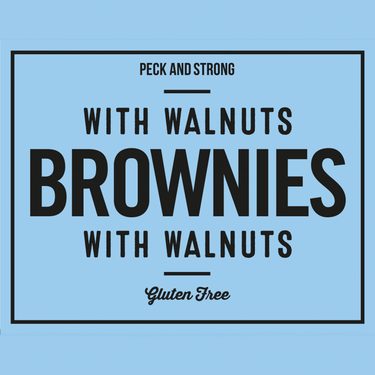 A proper “Brownie” which is all about the chocolate… packed full of Belgian Chocolate and walnut halves, this delightful bake has a gorgeously moist and truffle-like texture which will be adored by cake connoisseurs and chocoholics alike! We’ve made this one gluten-free too and it’s been adored by our customers for many years – Peck and Strong started on Mr Peck’s Devon kitchen table in 1980 and we continue to build on his ethos of great recipes and great ingredients make great cakes!