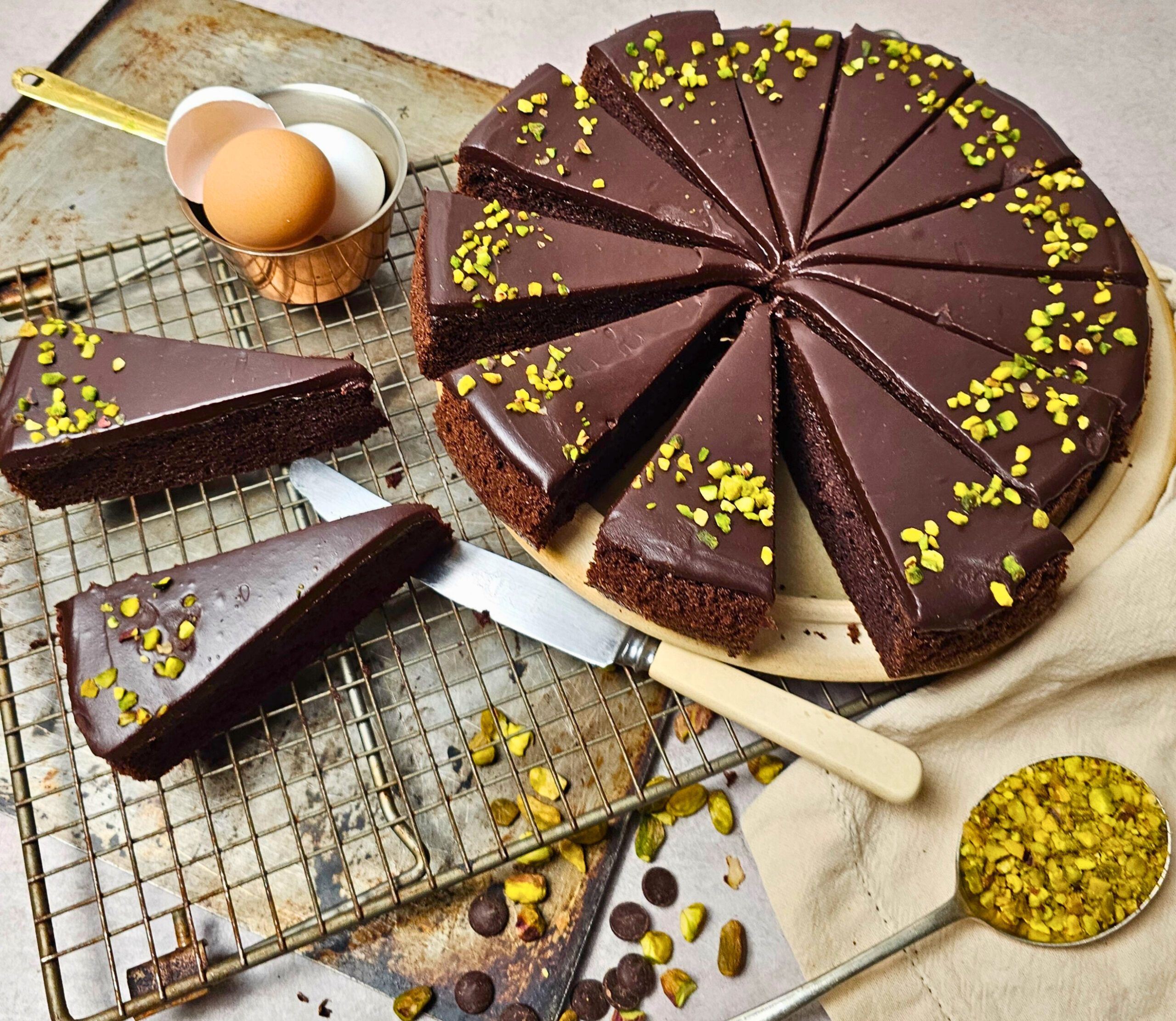We’re kicking things off with Chocolate & Pistachio – a rich, decadent single-layer cake made with care by our skilled bakers in Devon.