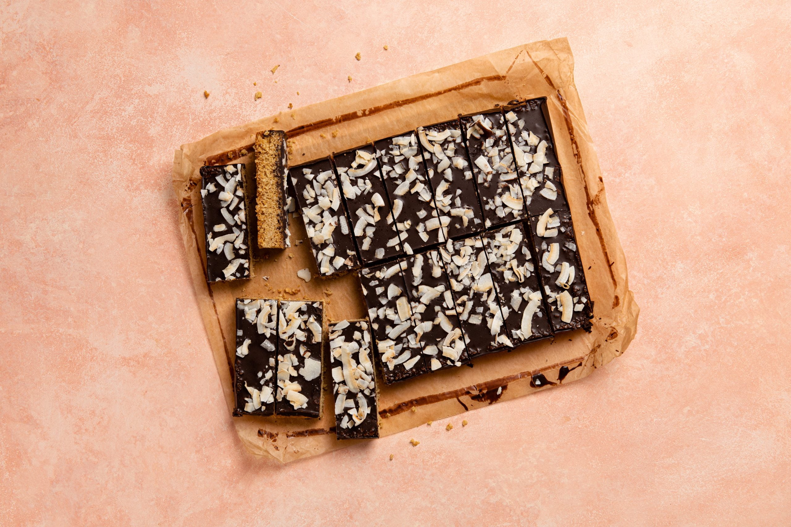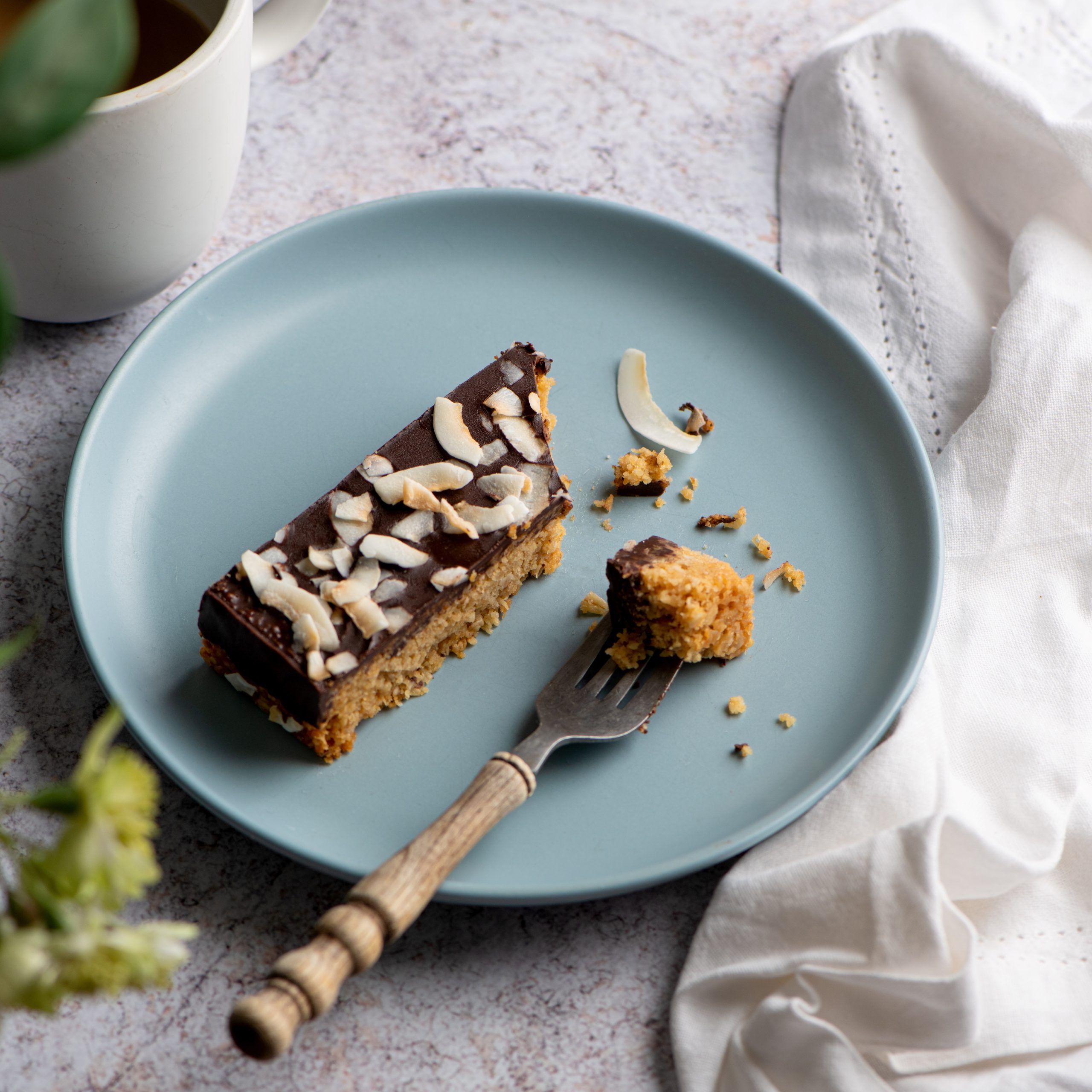 This bountiful bar is packed full of mouth-watering coconut alongside nutritious oats and topped with a thick chocolate frosting and toasted coconut chips. Suitable for vegans this taste of the tropics is a real hit with coconut lovers and chocoholics alike.