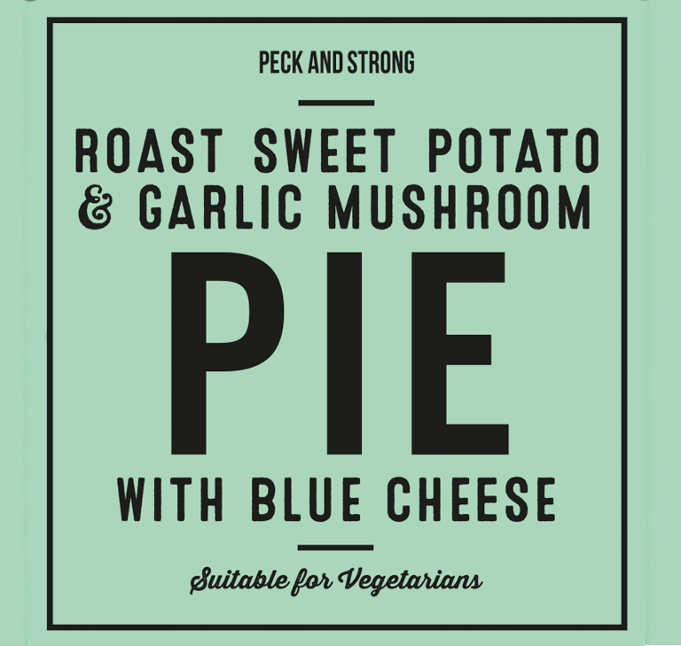 Wheat Flour (Wheat Flour, Calcium Carbonate, Iron, Niacin, Thiamin), Sweet Potatoes (24%), Mushrooms (24%), Pure Vegetable Margarine (Certified Sustainable Palm Oil, Rapeseed Oil, Salt), Water, Cropwell Bishop Blue Stilton Cheese (5%) (Milk), Free Range Eggs, Sunflower Oil, Salt, Garlic (0.2%), Black Pepper.