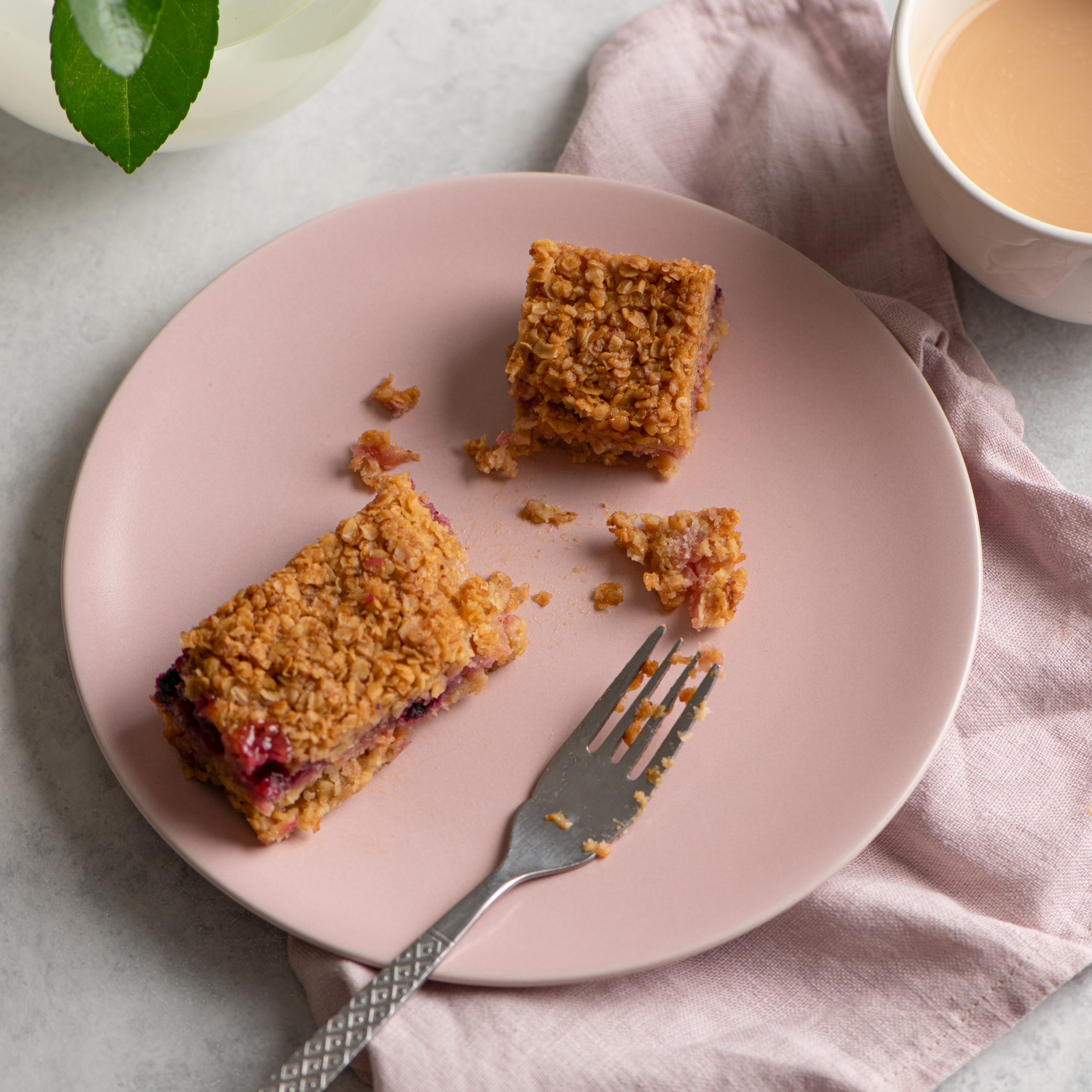 A twist on our perennial favourite, we’ve stirred beautifully juicy Strawberries and Raspberries into our hand cooked Bramley Apple filling and sandwiched it between deliciously malty oat flapjack.